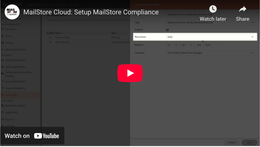 - Klicken Sie auf „Speichern“, um die Aufbewahrungsrichtlinie zu speichern