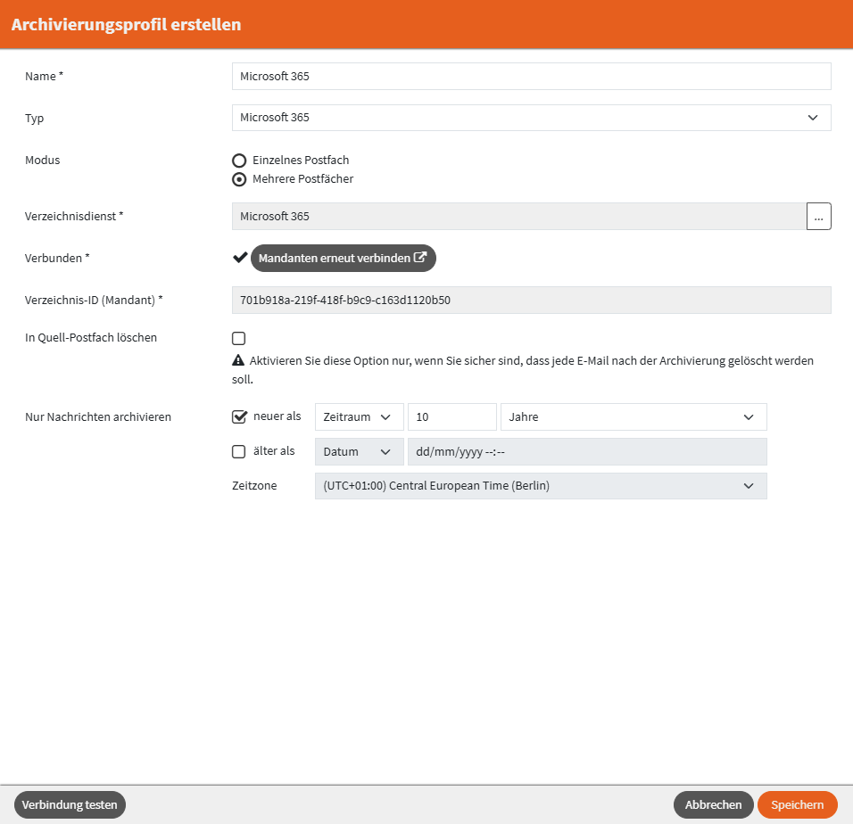 Erstellen eines Archivierungsprofils