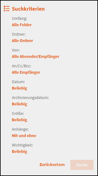 In dieses Feld eingegebene Wörter bzw. E-Mail-Adressen werden ausschließlich im Absenderfeld der E-Mail gesucht.