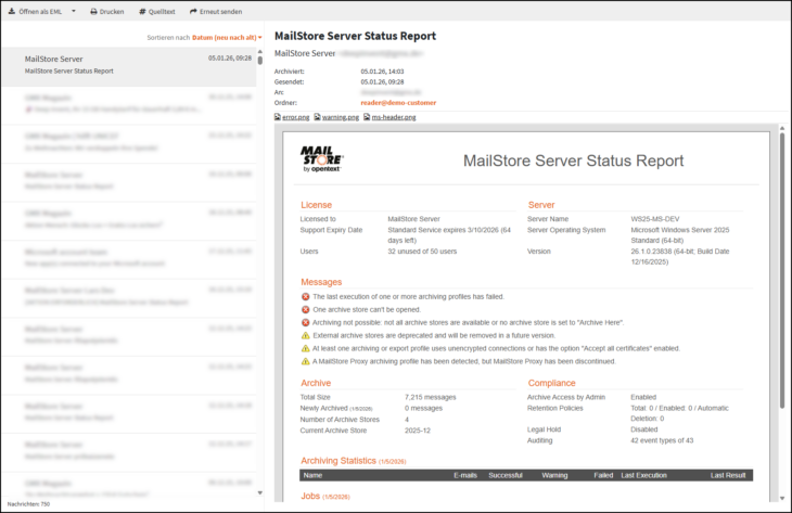 Hinweis: Der Menüpunkt Erneut senden ist nur verfügbar, wenn Ihr MailStore-Administrator eine „E-Mail Versand“-Konfiguration erstellt hat.