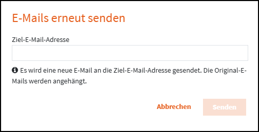 Über den Toolbar-Eintrag Erneut senden können ein oder mehrere E-Mails als Anhänge an einer neuen E-Mail versendet werden.